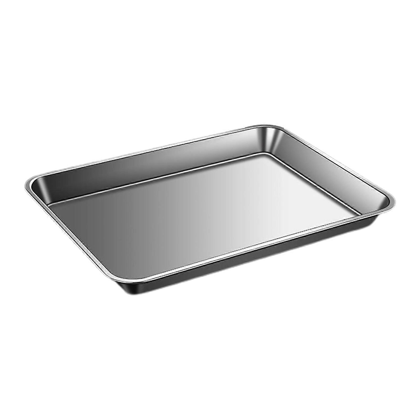 Stainless Steel Serving Tray Flat Bottom Tray Stainless Steel Baking Pan Oven Tray Rectangle Durable Use Dish Pan 35cm