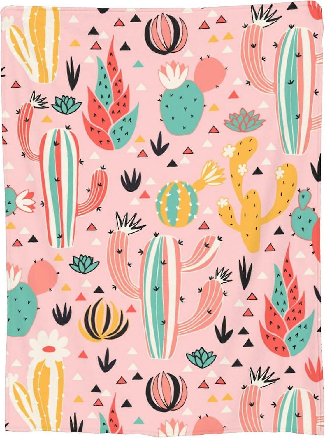 Pink Cactus Blanket for Adults Cute Cacti and Triangles Lovely Floral Flowers Throw Blankets Gifts Women Girls Lightweight Soft Fleece Cozy for Sofa C