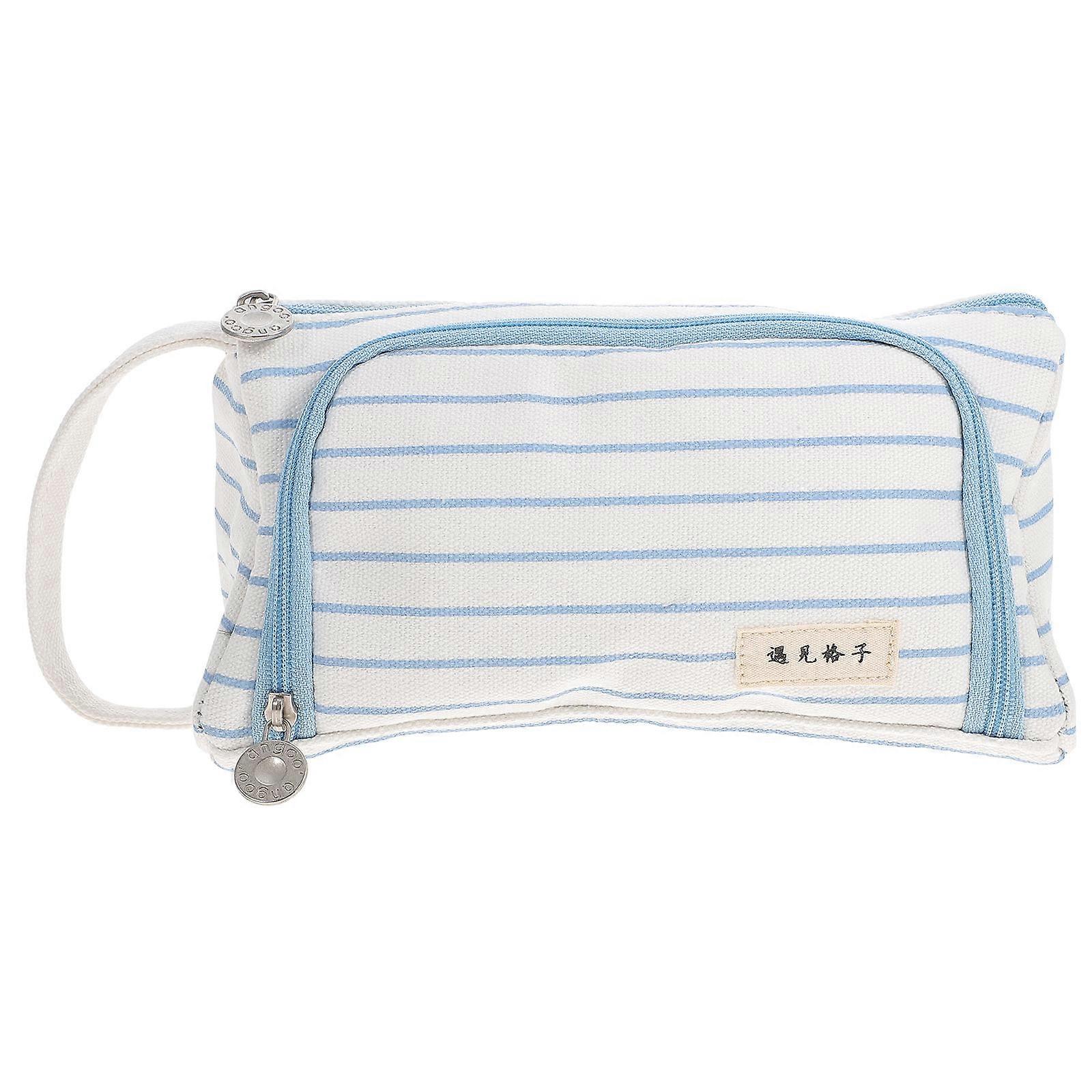 Pencil Pouch Canvas Pen Bag Rectangular Simple Design Student Stationery Bag Blue 21X11.5cm Storage 1Pack