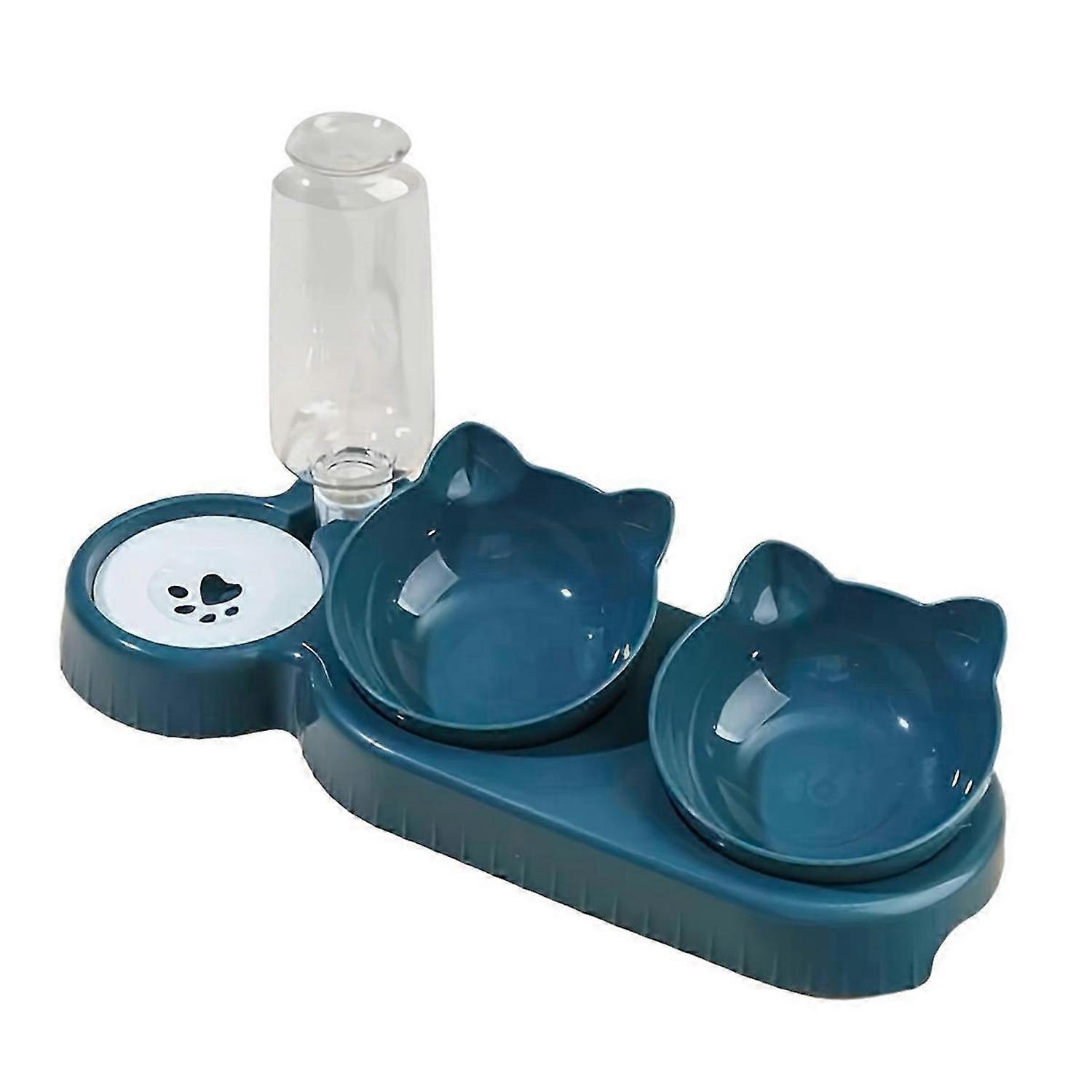 Pet Bowls with Water Feeder, 3 in 1 Design Tilted Water and Food Bowl Set with Gravity Water Bottle
