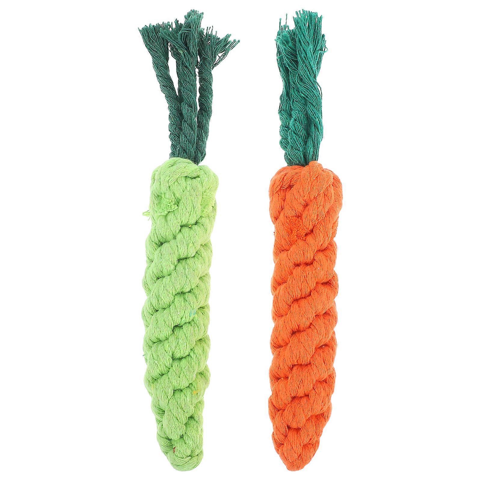Pet Chew Toy Carrot Shape Indoor Play Stress Relief Green Cotton Rope 2Pcs