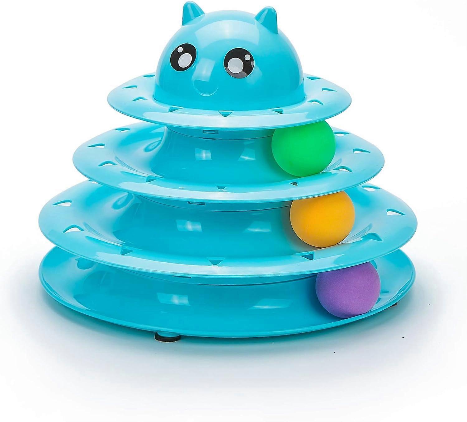 Pet Interactive Fun Roller Exerciser 3 Level Cat Teaser Ball Toy with 3 Colorful Balls(Blue)
