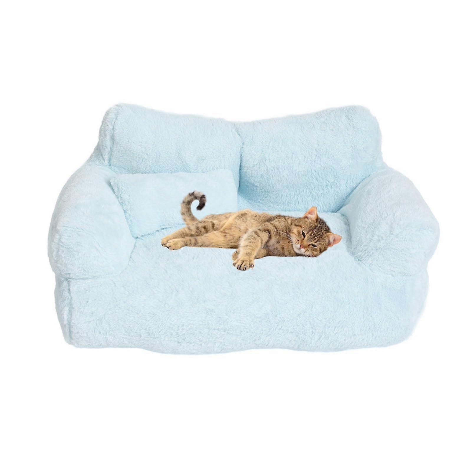 Pet Sofa Bed, Soft Plush Cat and Dog Couch with Non-Slip Bottom, Removable Memory Foam Pet Bedding for Medium and Small Pets (Blue L)