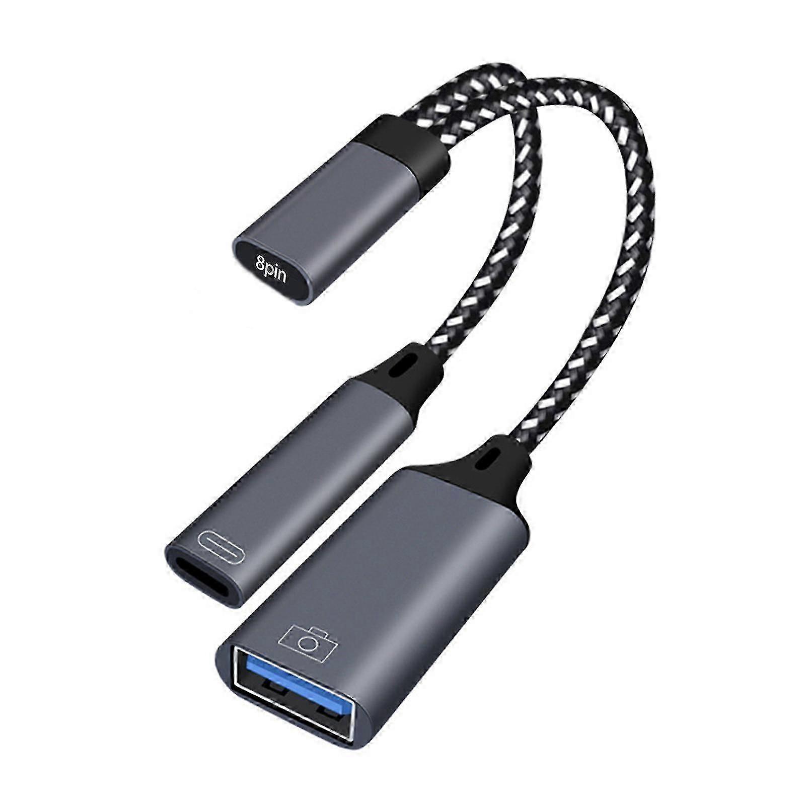 Featuring a plug-and-play design, this OTG converter is convenient to use and can be used to connect a mouse or keyboard to make operating your laptop even easier. What this adapter with a power supply interface design can offer you is that it allows you to play while charging, and it is responsive and fast transferring, enabling you to work more efficiently. It is constructed of ABS material. The length of this product is 13.5cm. It is suitable for phones and computers. Item Name: OTG Converter Material: ABS Interface: 8-Pin Male, 8-Pin Female, USB Function: Extends The USB Port For Mobile Phones, Computers, Tablets, Etc. With 8-Pin Port For External USB Devices Size Details: Length: 13.5cm/5.31"(Approx.) Notes: Due to the light and screen setting difference, the item's color may be slightly different from the pictures. Please allow slight dimension difference due to different manual measurement. Package Includes: 1 x OTG Converter