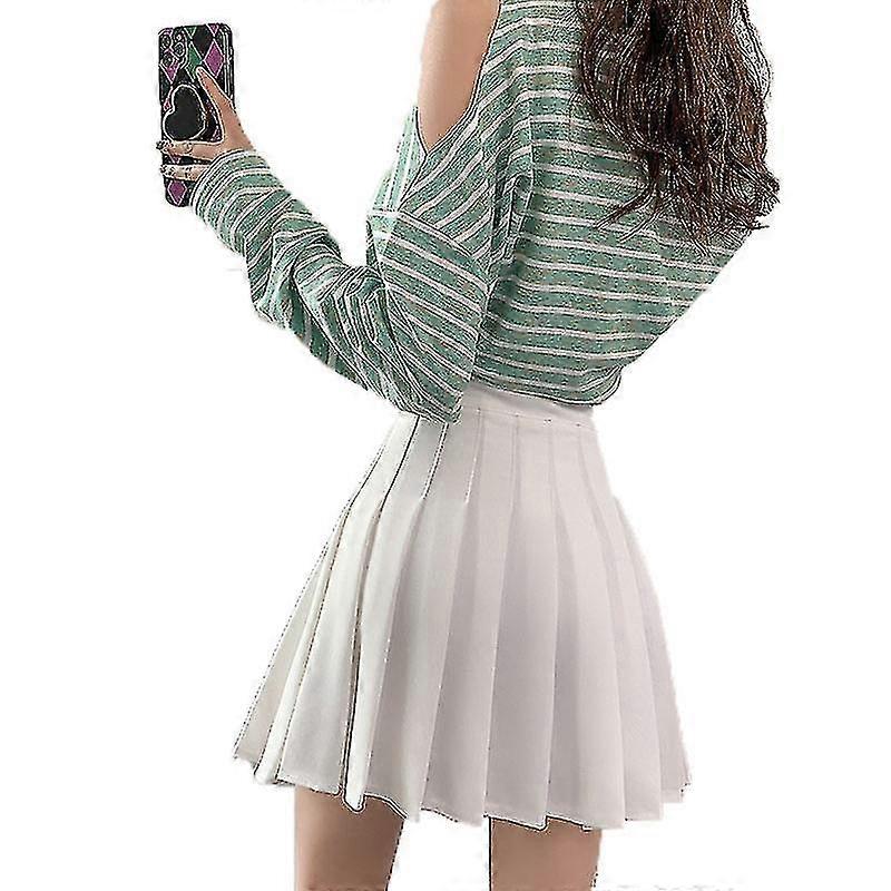 Pleated Mini Skirt High Waist A Line Casual Skirt Women Solid Polyester Skirt