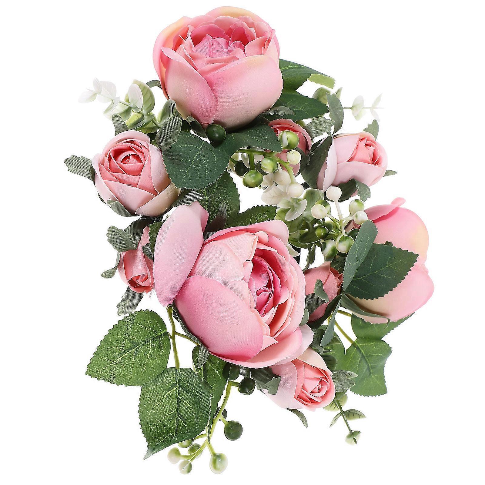 Pink Artificial Flower Candle Ring for Wedding Table 5Pcs Set