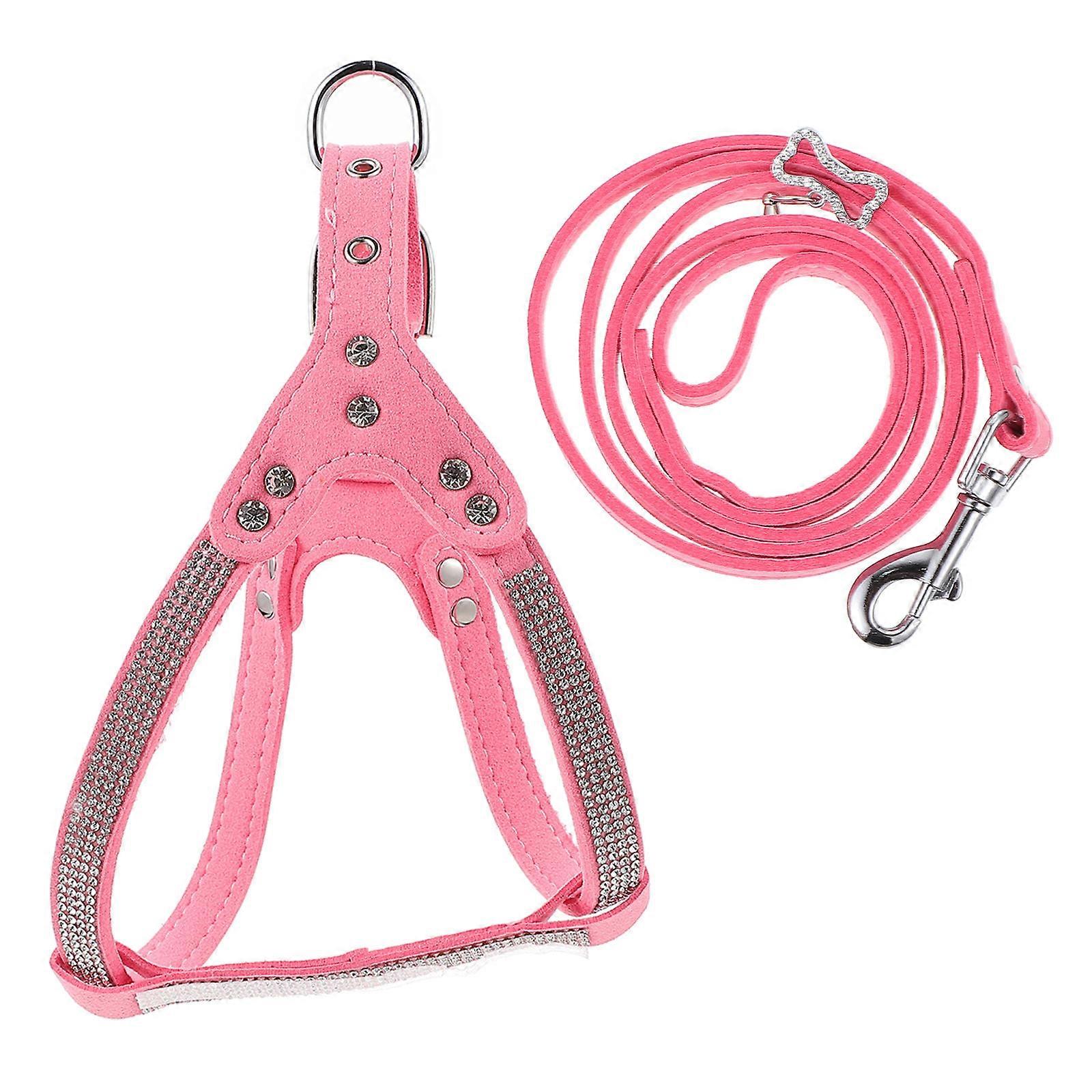 Pink Dog Collars And Leash Harness Set For Daily Use Adjustable For Pet Owners 1 Set