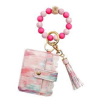 Pink Wrist Keychain with Fluorescent Card Bag Silicone Bead Bangle Lightweight Comfortable
