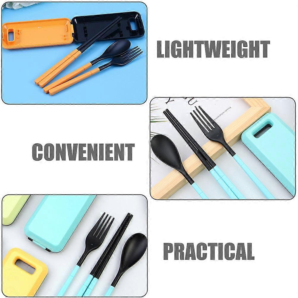 This product is portable tableware set, which is equipped with fork chopsticks and spoons of three-piece, ABS storage case, convenient and chic, portable, health and practical. Whether for , business trip or at home, it is totally the tool. Features - Color: Random Color - Material: ABS. - Size: About 12x6x2.5cm/ 4.72x2.36x0.98 inch. - Made of ABS, safe, sanitary, . - Lightweight, environmental and convenient for traveling or outdoor use. - Set comes with 1 set of chopsticks, 1 fork, 1 spoon and fit in a case. - Chopsticks, scoop, fork, each one can be foldable, easy to carry. - Plastic material set with a case container is so trendy. Package list: 2 x forks 2 x spoons 2 Pairs x chopsticks 2 x storage cases