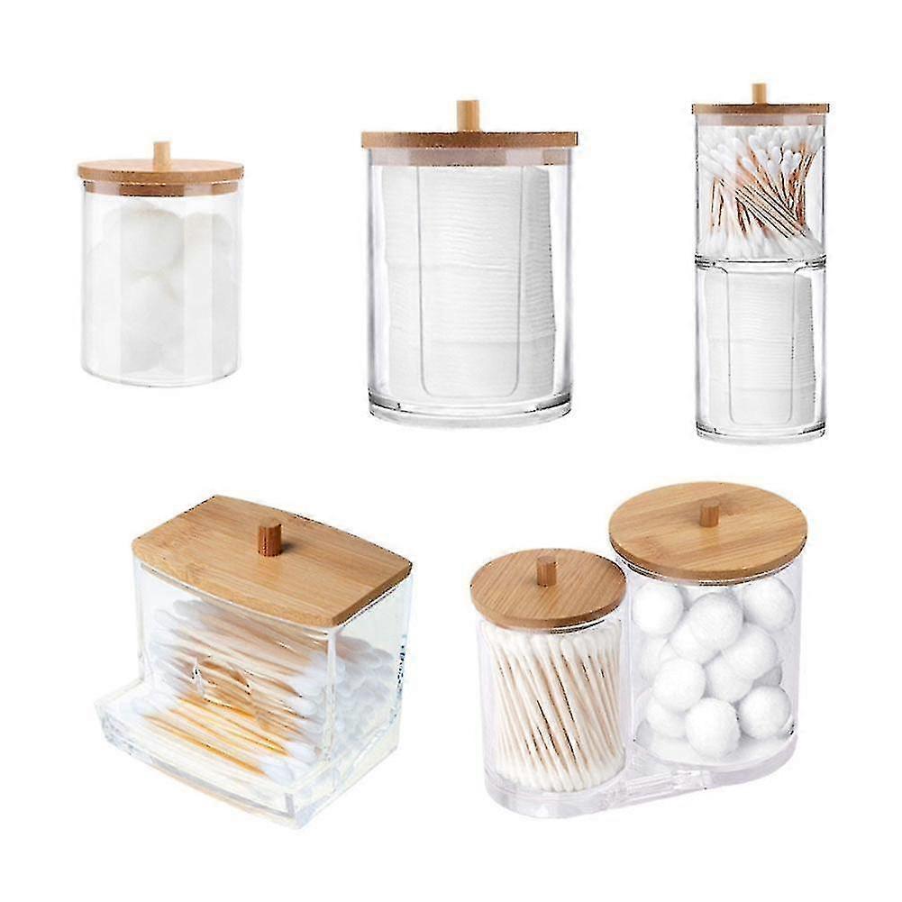 Plastic Storage Box Bathroom Jar Makeup Organizer Cotton Round Pad Holder Cotton Swab Box Qtip Holder Dispenser With Bamboo Lid