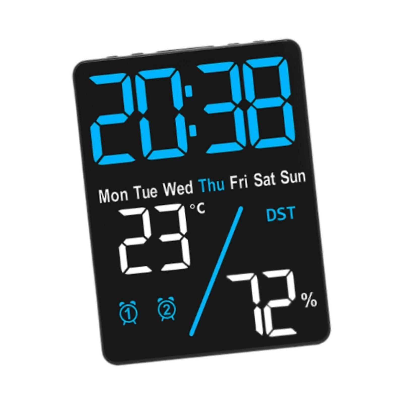 Plug in Digital Desktop Alarm Clock 12/24H with Date Temperature for Kitchen Blue Backlight