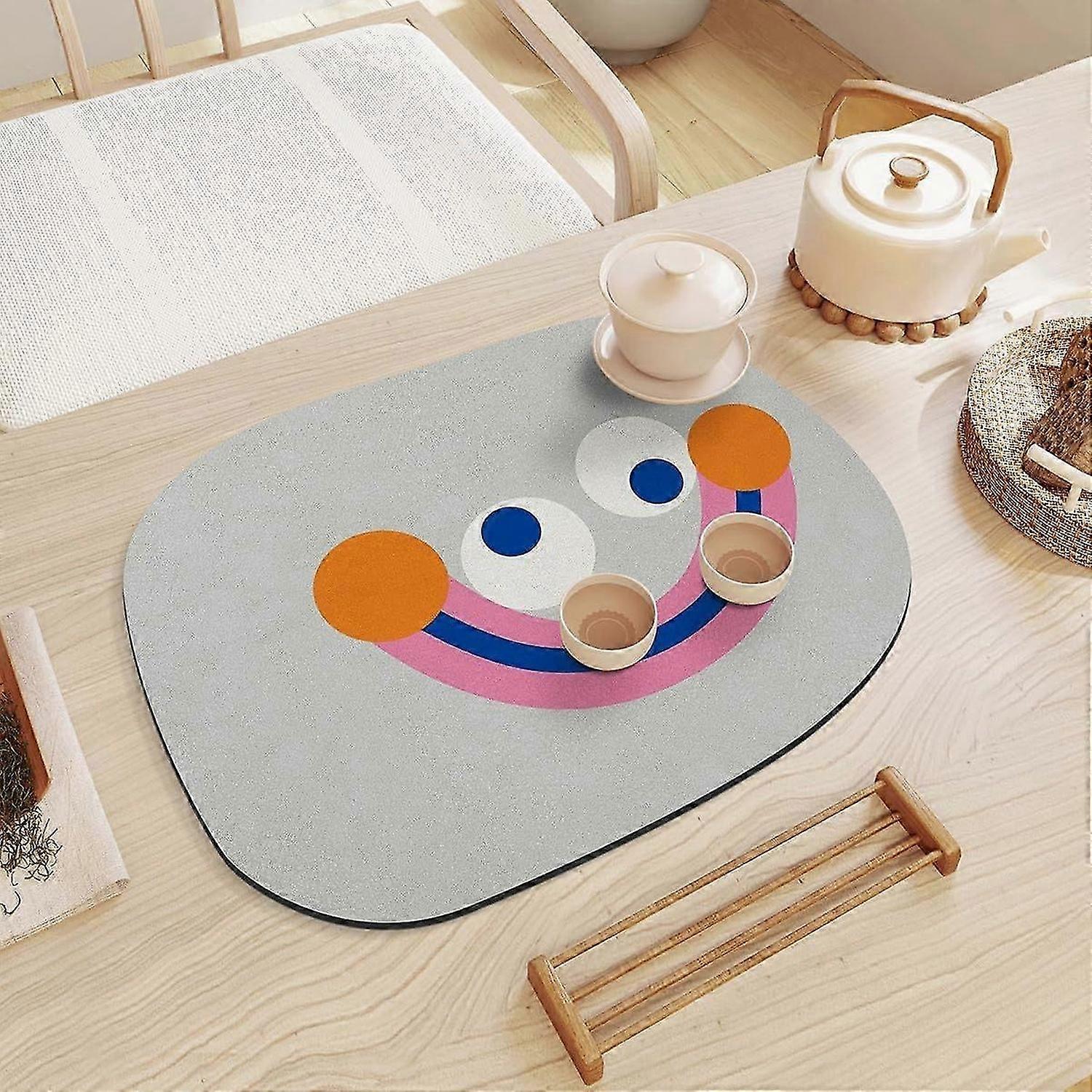Polyester Dish Drying Mat Cute Absorbent Dish Mat for Kitchen Counter, Machine Washable Non slip Dish Drainer Mat Quick Dry Kitchen Mats Heat Resistan