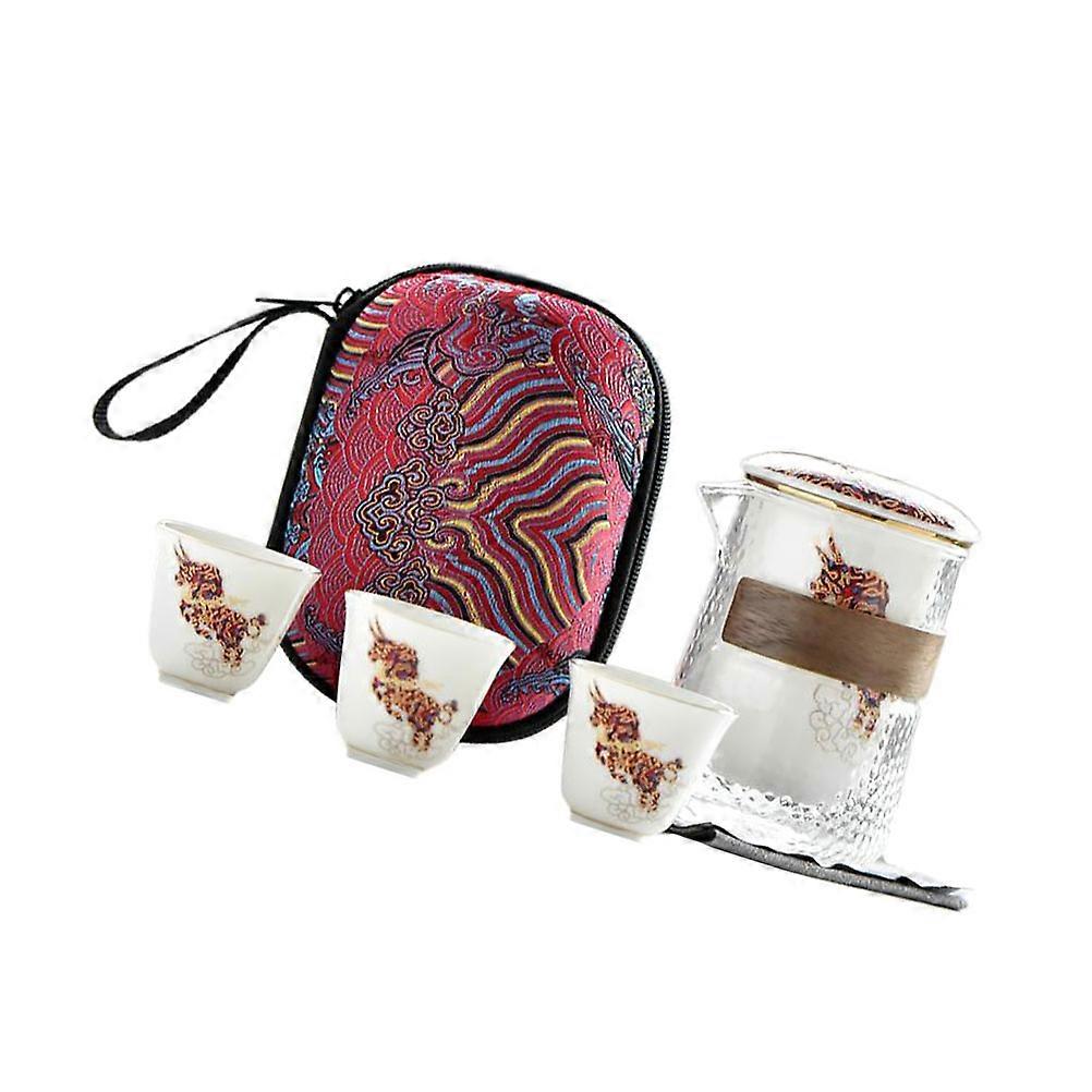 Portable Tea Cup Set Ceramic Teapot Cups Teaware Travel Daily Use Assorted Color Space Saving 1 Set