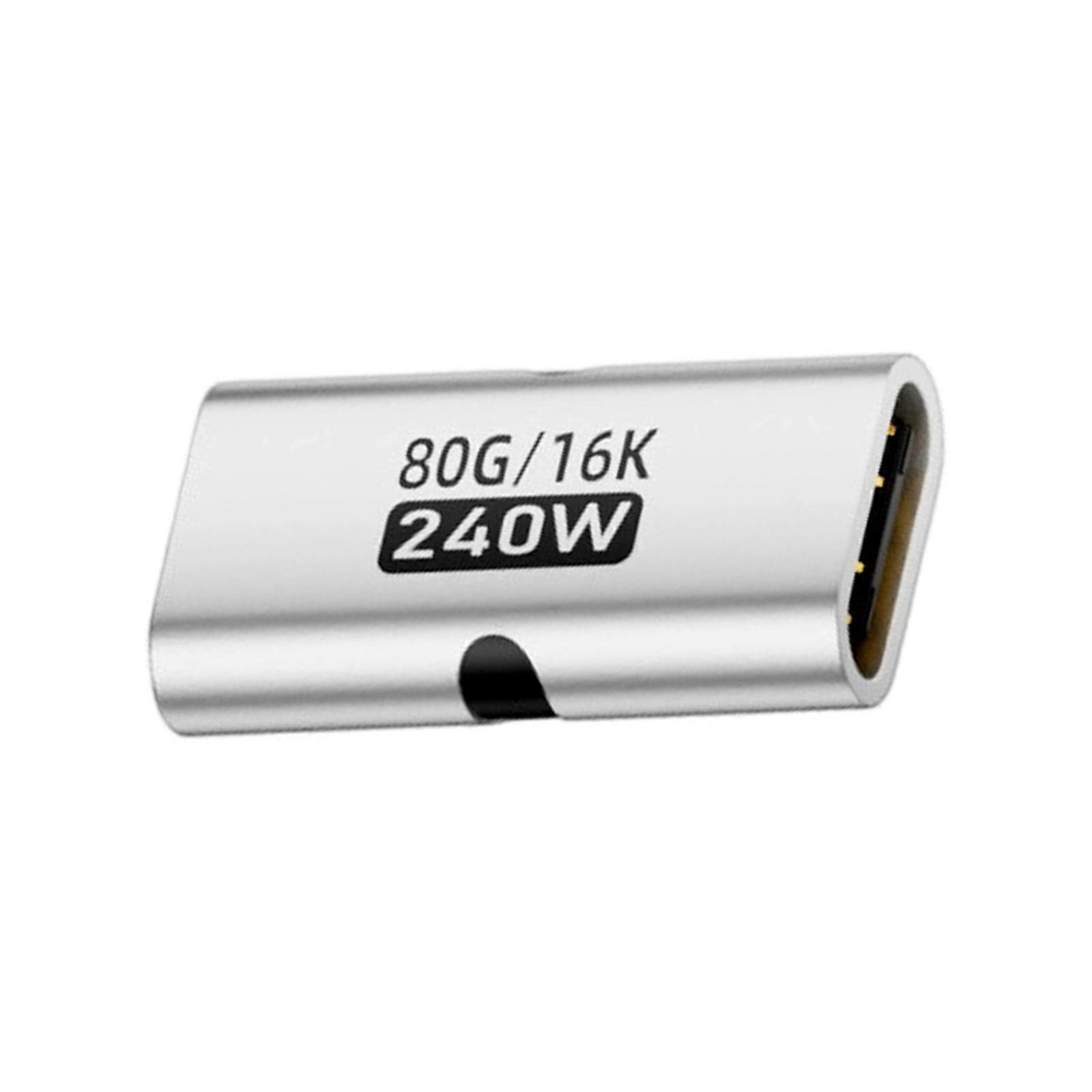 Portable USB C Female to Female Adapter Fast Speed Data Transfer 240W 80Gbps 16K 60Hz Adapter for Phone Laptop Silver