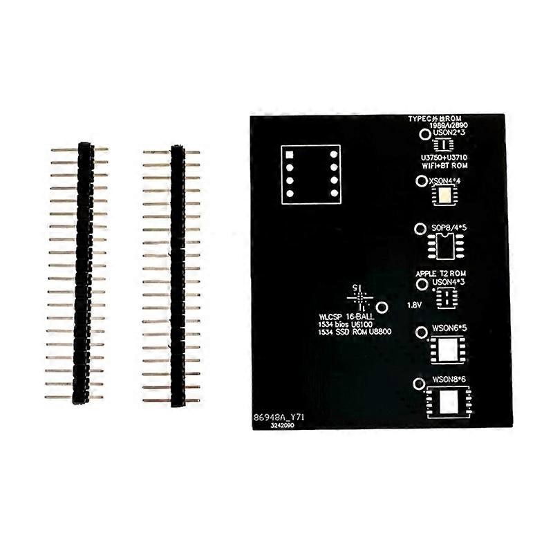 Features: Conveniently read and write T2 chip BIOS on laptops with this versatile adapter:Specifically designed for T2 chip BIOS operations, this adapter allows for easy access to BIOS data on laptops. Wide compatibility for different chip packages:Compatible for WSON8 and QFN8 chip packages commonly used in laptops, this adapter supports a variety of T2 chips found in various models. Suitable for computer repair professionals:Perfect for computer repair experts, this adapter enables seamless reading and writing of T2 chip BIOS on laptops, facilitating efficient repairs and upgrades. Versatile applications in various settings:Whether it is an educational institution or a repair workshop, this adapter serves as a valuable tool for testing and programming chips with WSON8 and QFN8 packages. Durable and user friendly design:Crafted with quality materials, this adapter ensures long lasting performances and ease of use. Simply insert the T2 chip into the corresponding test slot to perform read and write operations without any complicated procedures. Specifications: Material:PCB Serials Number Modification Tool for 1989/1990/1932/2159; Support 1706/1707/1708/1989/1990 Type c rom Read/Write; Note: Please allow 1-2cm errors due to manual measurement,please make sure that you do not mind before you order. Due to the difference between different monitors, the picture may not reflect the actual color of the item. Package includes: 1xBios Read/Write Adapter