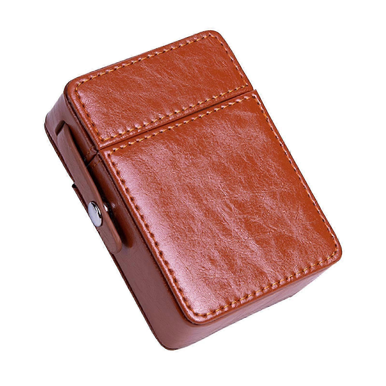 PU Leather Portable Cigarette Case with Lighter Holder Simple Anti-Scratch Storage Case Flip protective Tobacco Pouch fL w