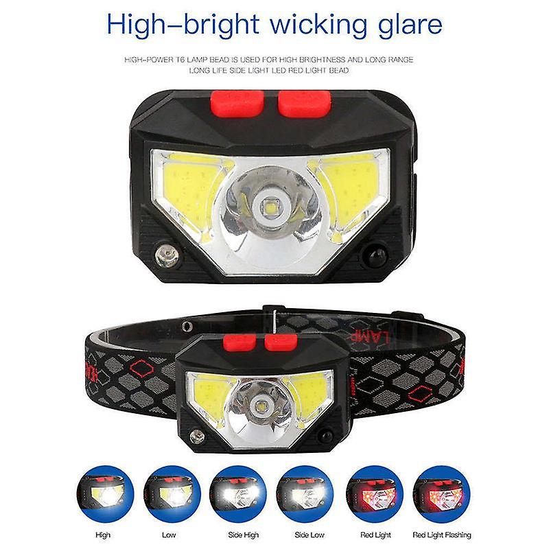 Description: Safety and Lightweight-- NO overheating after using for hours. Adjustable Strap makes your head get the best comfortable condition. 6 Modes&Motion Sense Function-- Headlamp has 6 modes of lighting. You get the exact level of brightness (medium/high/flash) on main light and the side light. The motion detection provides you the convenience you need for any use in the dark. Easily change between modes. Hands-Free Lighting-- When your task requires both hands and a bright light with a wide beam, reach for the soft digits Headlamp. It produces 300-800 lumens of different light to as far as 200--500 meters, with high performance led Bulbs. Rechargeable and Waterproof-- Compact and powerful USB rechargeable battery provides for 5 hours using time. There is no need to change batteries. It is very convenient for you to just charge it with the USB cable. IPX6 water resistant grade, it's to use even when it's raining. Multifunctional Usages-- Extremely suitable for nighttime walking, running, bicycling, hiking, camping, climbing, fishing. Specification: Material: ABS Size: approx. 38x63x43mm / 1.5x2.5x1.7inch Package Includes: 1 Piece Headlamps 1 Piece USB Charging Cables