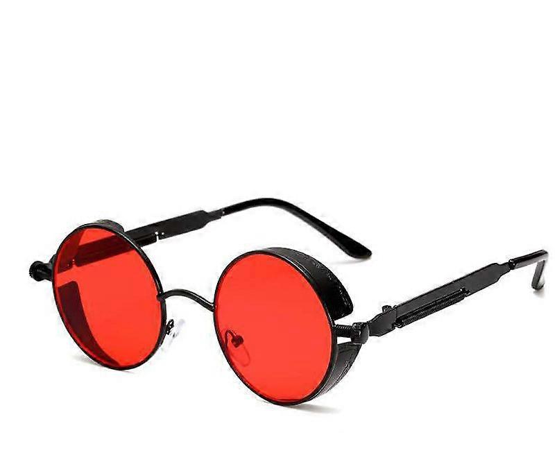 Red steampunk round frame retro sunglasses
