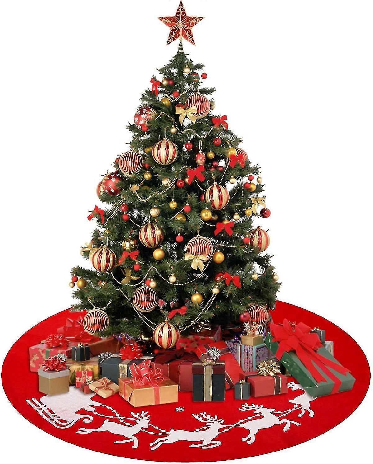 Reindeer Sleigh Pattern Christmas Tree Blanket 100cm Christmas Holiday Party Decorations