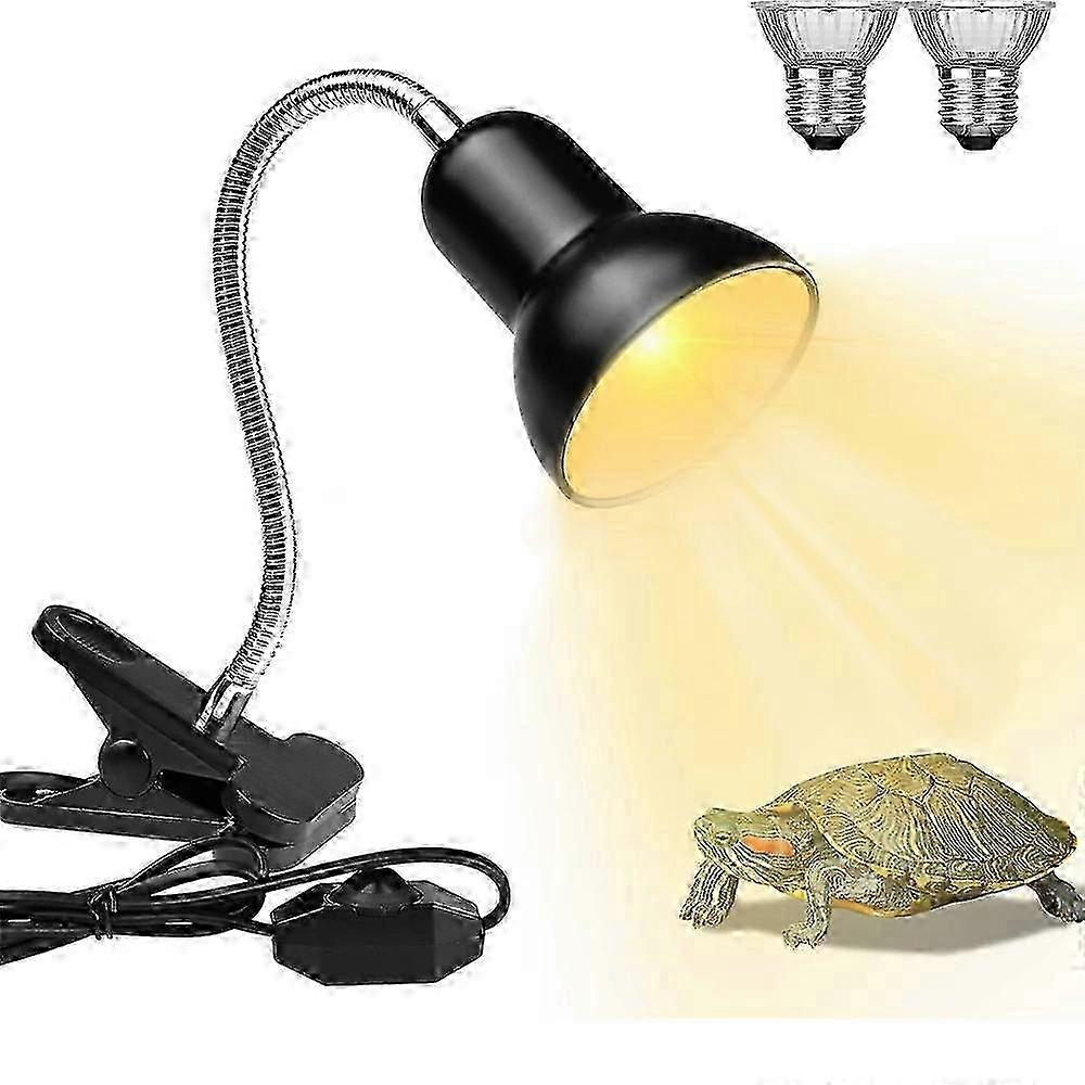 Reptile Heat Lamp,Turtle Aquarium Heat Lamp with Clip, 360 Rotating Basking Lamp for Reptiles Lizards Turtles Snakes with 2 Heating Bulbs