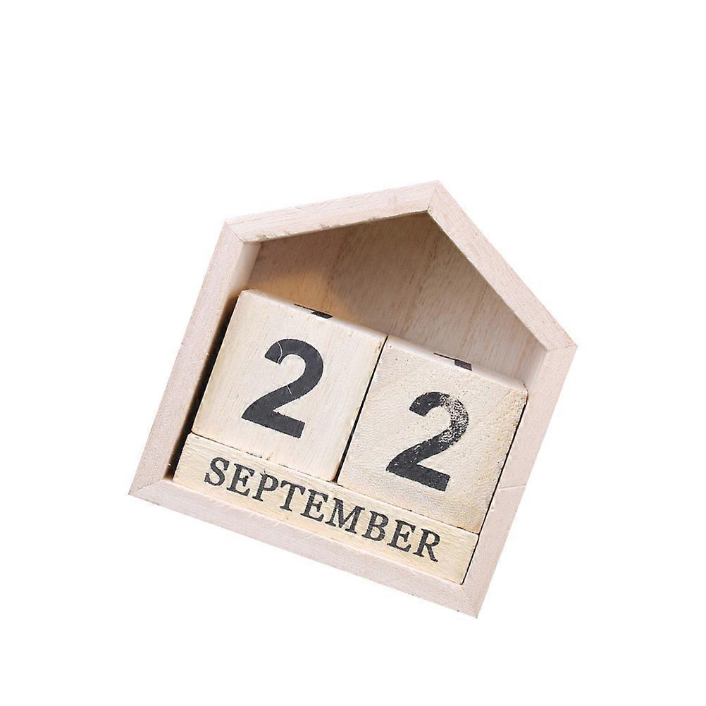 Retro Desktop Calendar House Shape Manual Date Turning Plastic Beige for Office Home Decoration