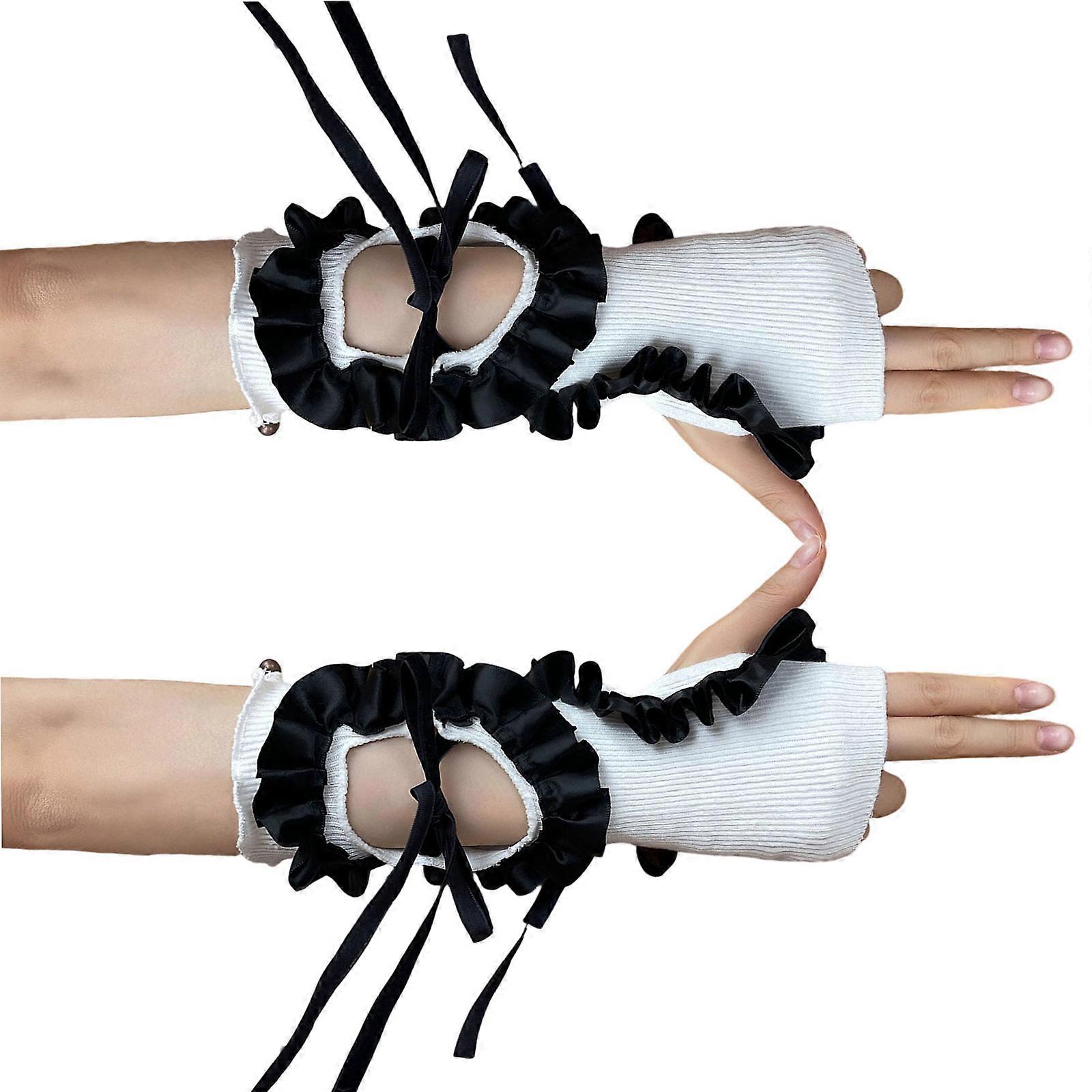 Retro Punk Mesh Gloves With Elastic Band And Satins Trim Breathable Arm Warmer For Concerts Daily Outfits White