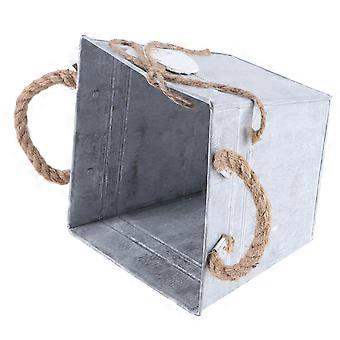 Retro Vintage Garden Planter with Silver Iron and Hemp Rope for Storage Use 1pc