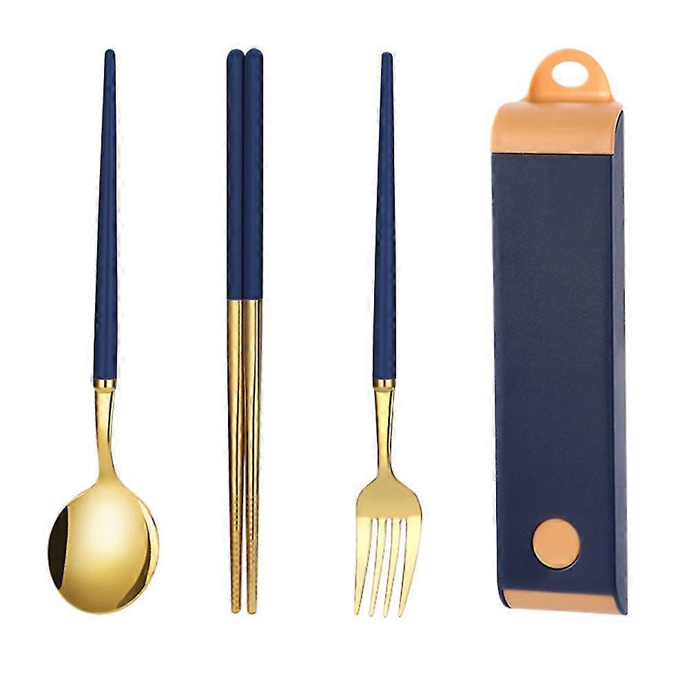 Reusable Travel Stainless Steel Utensils Set With Case, Portable Lunch Box For Camping And Office,dark blue