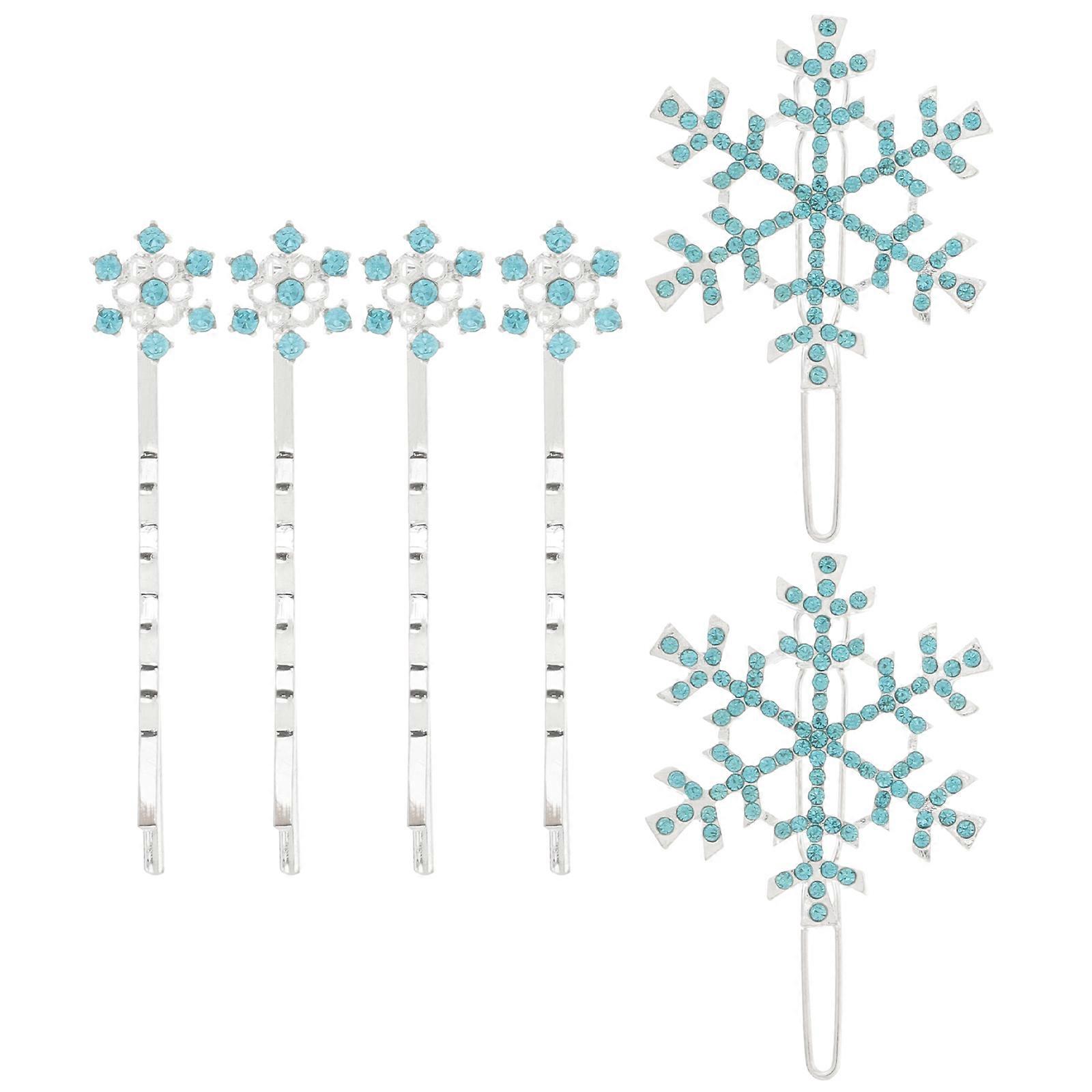 Rhinestone Snowflake Hair Clips for Girls with Shining Design and Alloy Material 6 Pieces Blue