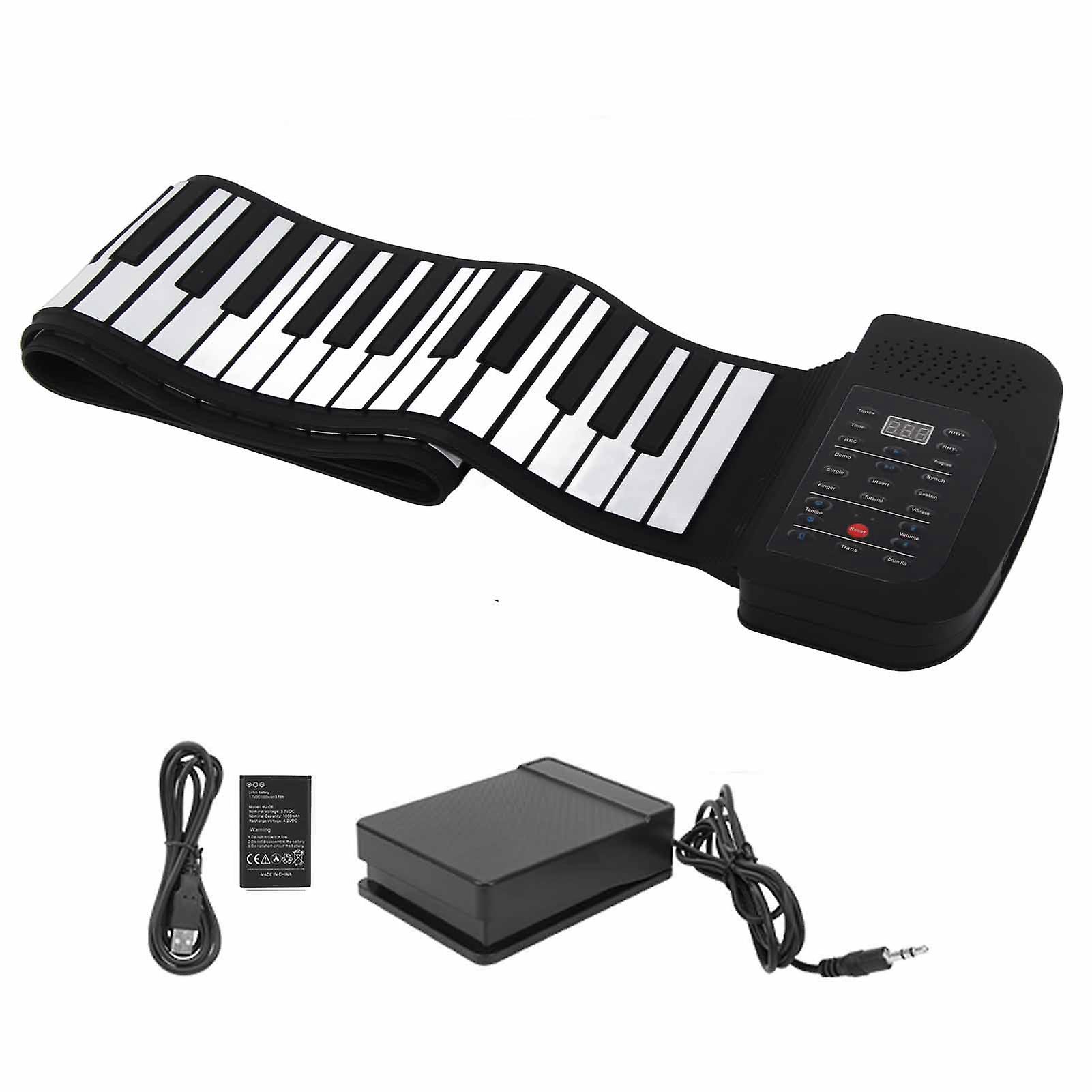 1、Rechargeable function (external replaceable lithium battery), no longer have to worry about running out of elecicity when going out to play, let alone buy a battery and spend money. 2、Thick design, black keys raised by 9mm [black keys are higher than white keys], making playing more comfortable. 3、Waterproof design of keys and anti‑interference technology avoid ouble of being easily disturbed by outside world. 4、Professional audio sucture design, song dual magnetic speakers, more lifelike, clear and crisp eble, deep bass. 5、Touch function conol panel and eleconic volume buttons are easy to use and durable. Condition: Brand NewItem Type: Roll-up PianoModel: PA88Tone 88 Keys (A1-C9) Standard Piano128 Tones, 128 Rhythms, 30 Demo SongsDigital DisplayMaster volume conol keySpeed Conol KeyMode Selection Keys (tone and rhythm)Recording, OOP, Playback functionsSingle finger chord and multi finger chordStart/stop, synchronous incest function keysDemo songDrum kitKeep Pedal FunctionPower Supply: Built-In 1000 mAh Lithium Battery, USB DC 5V Power Supply 1 xRoll-up Piano1 x Foot Pedal1 x 3.7V Lithium Battery1 x Power Cord1 x Manual