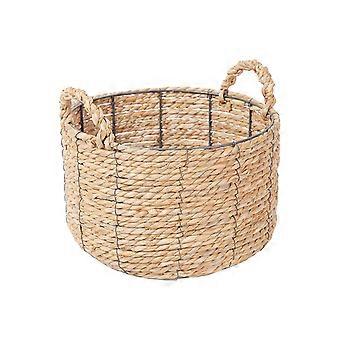 Round Wicker Storage Basket with Handles - Large Water Hyacinth Bin 12''x 7''