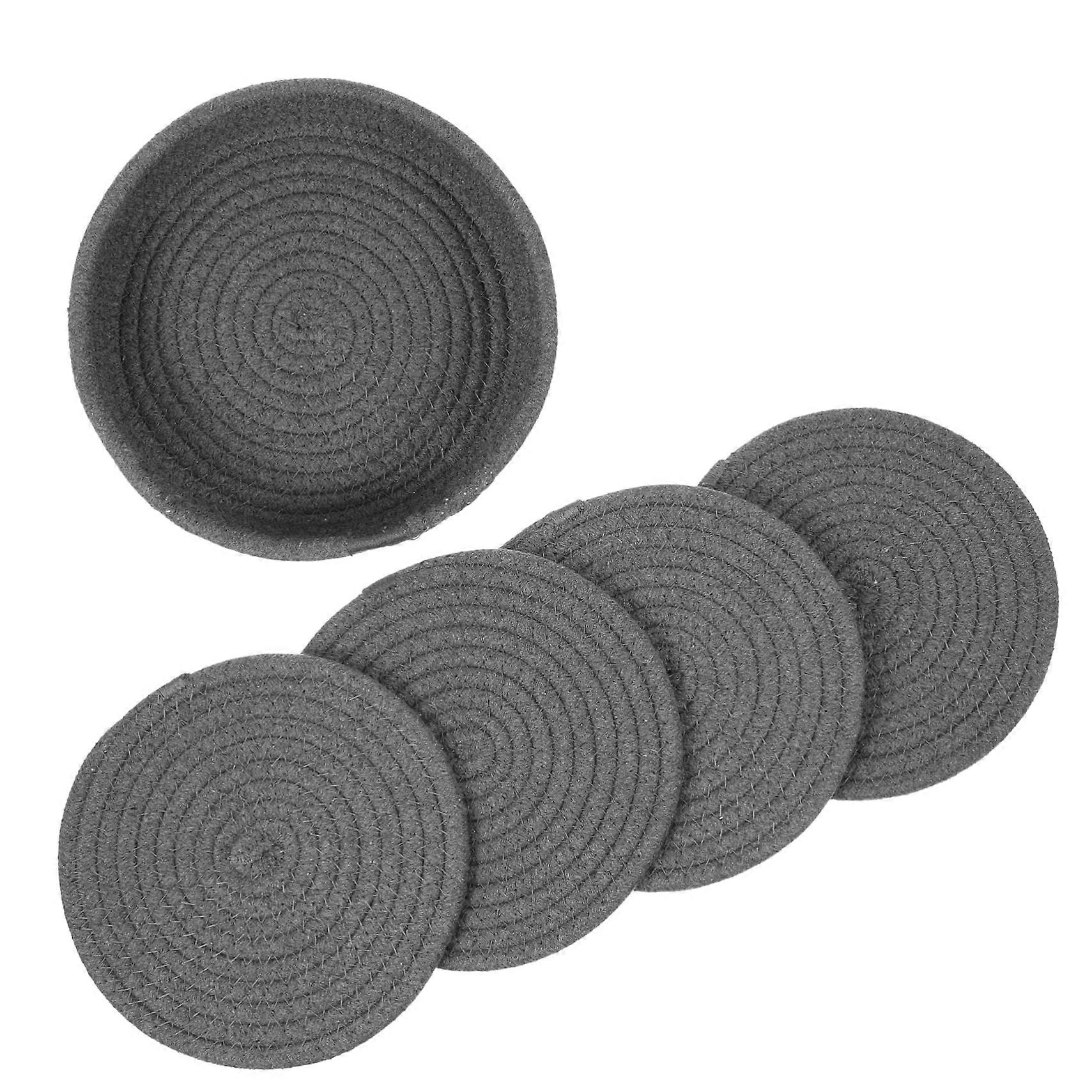 Coasters for Hot Food Set of 4, Round Cotton Rope Placemats, Heat Resistant Kitchen Trivets, Deep Grey