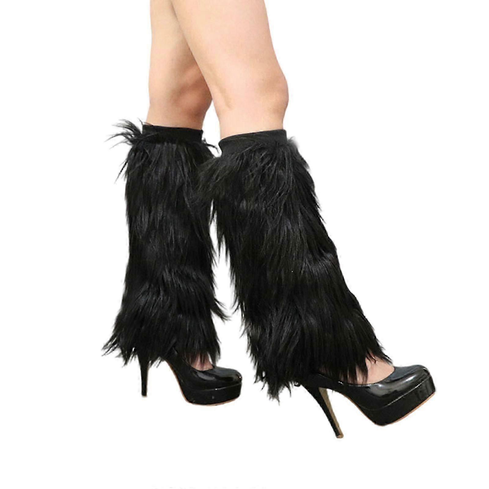 Stylish Thickened Plush Leg Covers for Ladies Winter Warm Furry Leg Warmers Elastic Ribbed Top Boot Cuffs Toppers Socks orange pink 25B