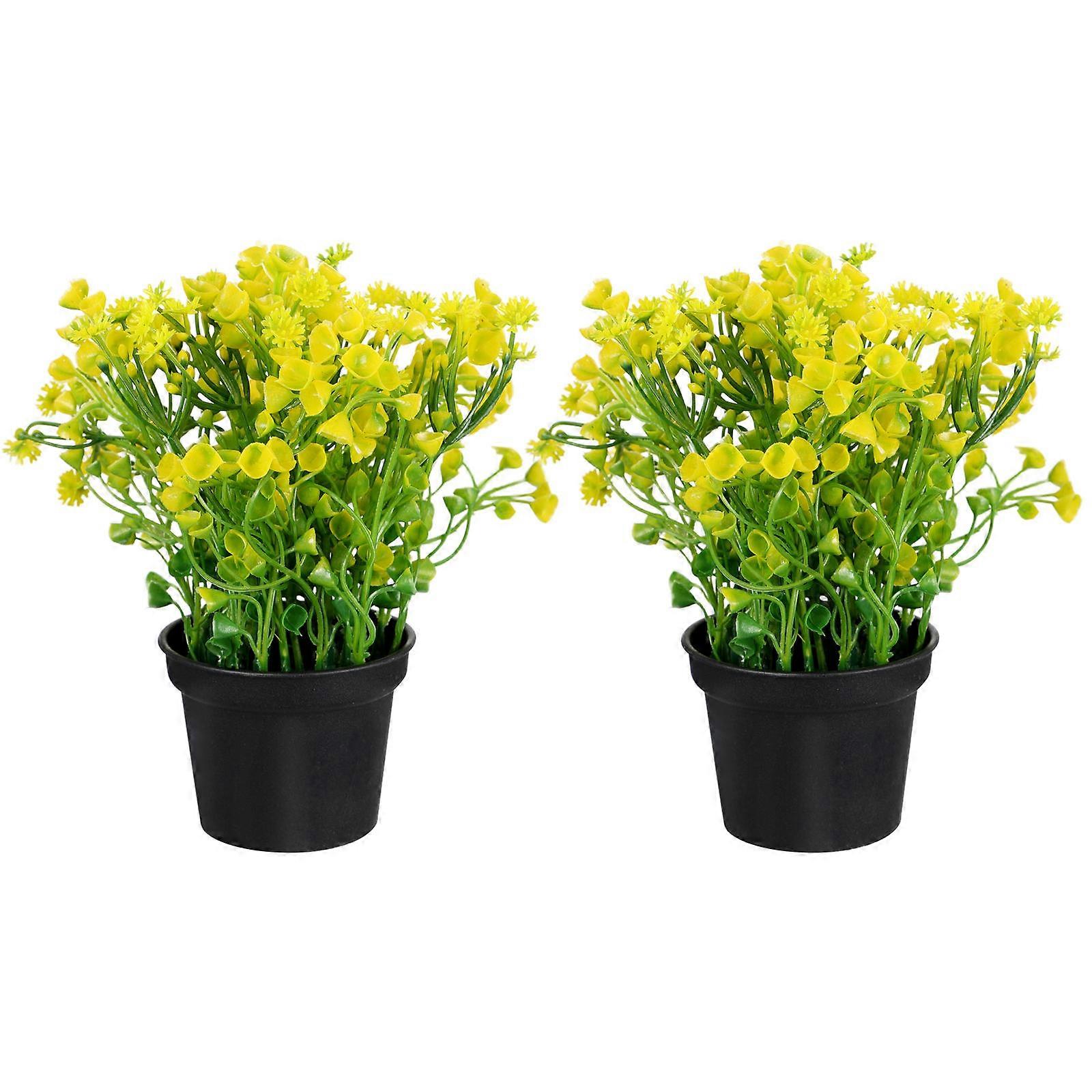 Faux Bell Grass Decor Artificial Potted Plant For Garden 12X18CM Square Style 2Pcs