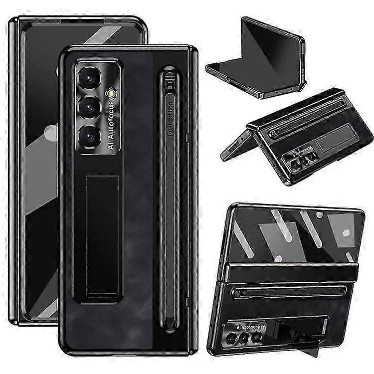 Compatible For Samsung Galaxy Z Fold7 5G Case Pen Slot Leather + PC Kickstand Phone Cover with Tempered Glass Film, Stylus-2025