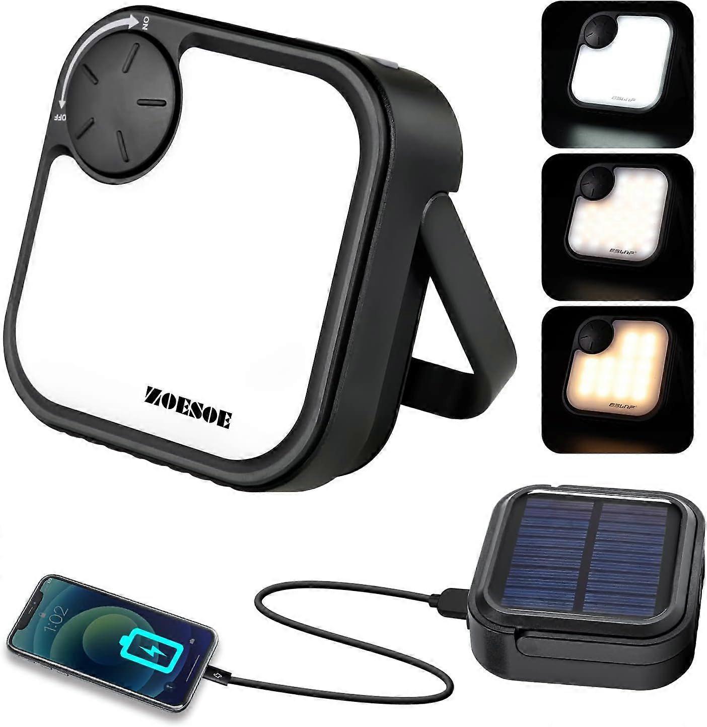 Rechargeable Solar Camping Light: USB Portable Waterproof LED Camping Light and Phone Charger for Emergencies, Hurricanes, Power Outages, Tent Lights,