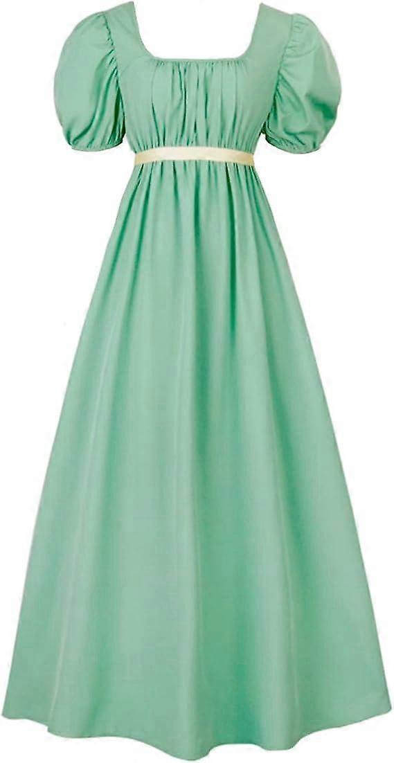 Regency Dresses for Women with Satin Sash Ruffled Puff Sleeve Dress
