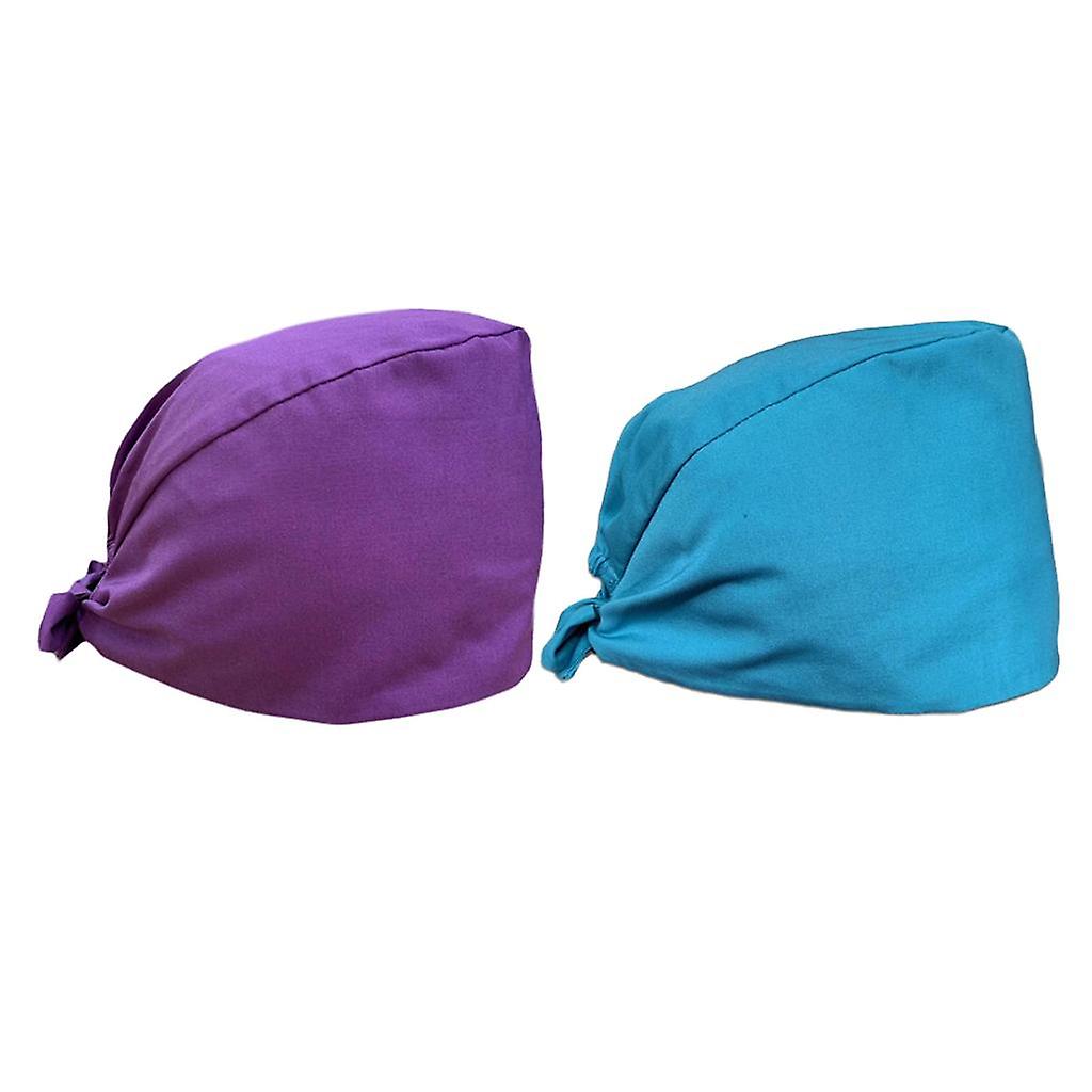 Scrub Cap Stretch Bouffant Working Hat Head Wrap Purple+Dark Blue