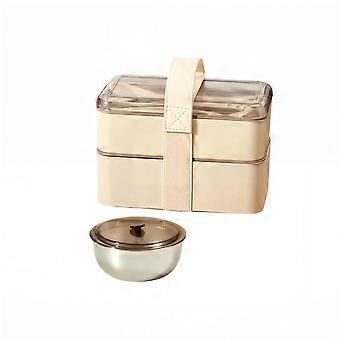 Kannettava Bentos-laatikko opiskelijoille ja toimistolle, vuotamaton, mikroaaltouunin kestävä, muovinen lounasrasia, kaksikerroksinen, ruokailuvälineillä, monivärinen