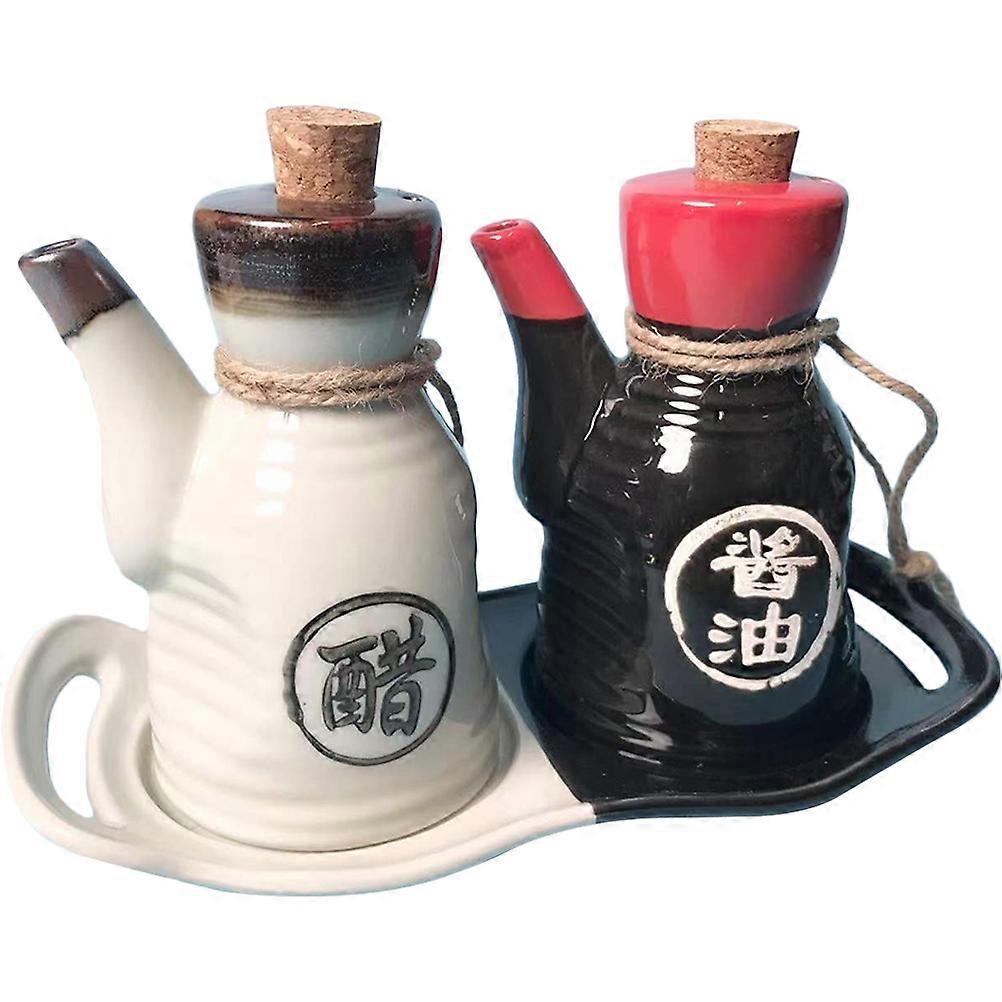 Seasoning Dispenser Sauce Dipenseing Bottle Ceramic With Tray For Households Japanese Style Soy Sauce Vinegar Set 1Set