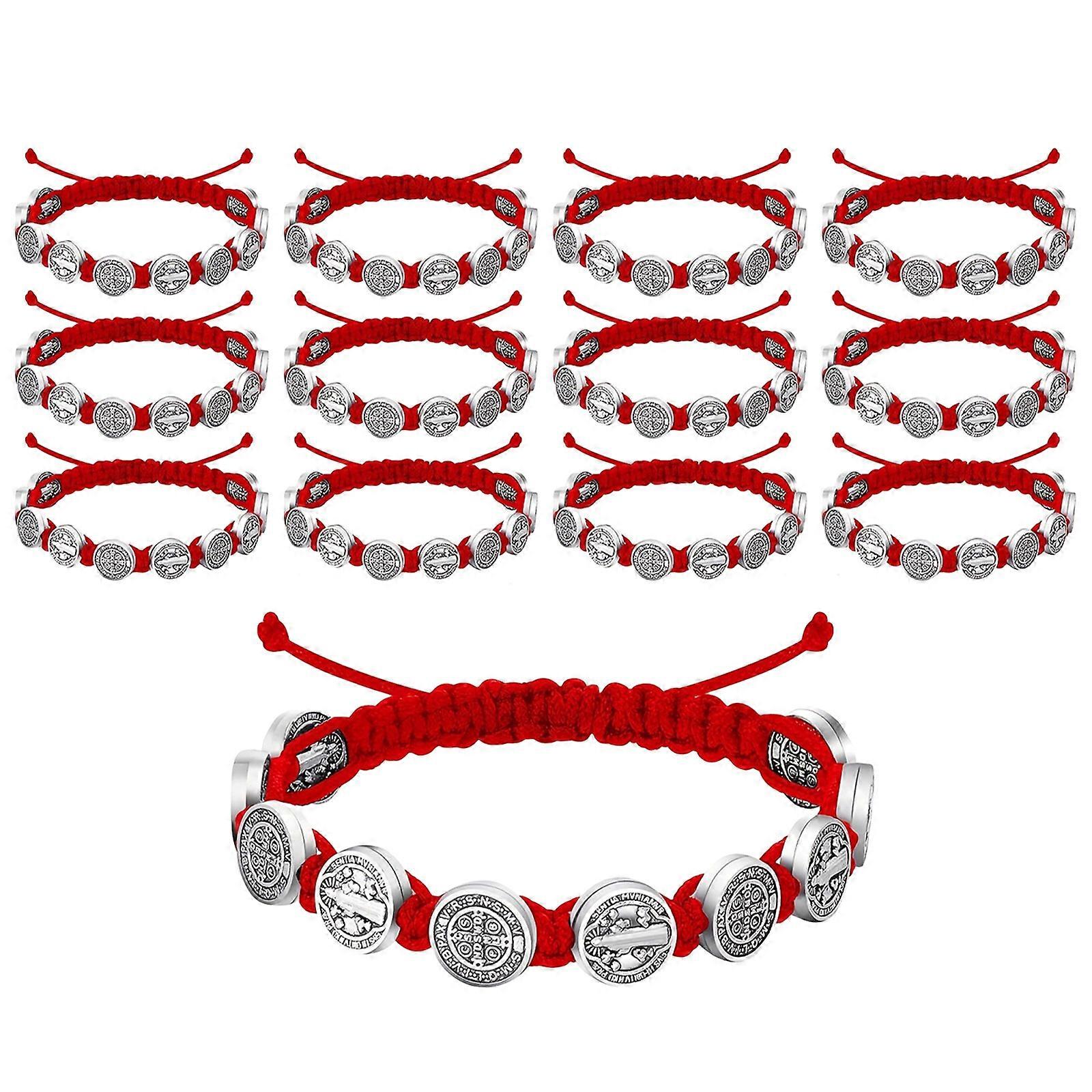 Set Of 12 Saint Benedict Cord Bracelets Handmade Religious Protections Amulets Handchains Multicolor Blessing Bands Multicolor