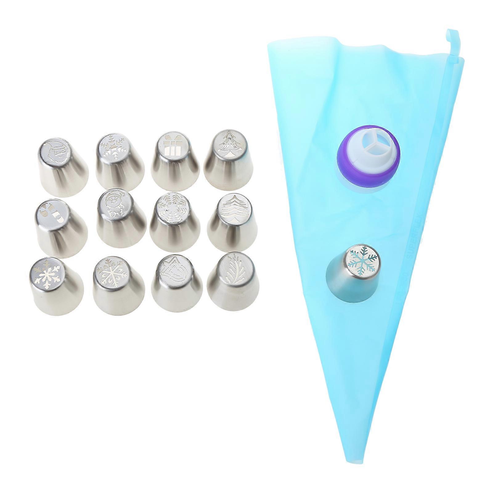 Set of 15 Russian Piping Tips Christmas Cake Icing Frosting Nozzle with Coupler for Cupcake Decorations Christmas Design