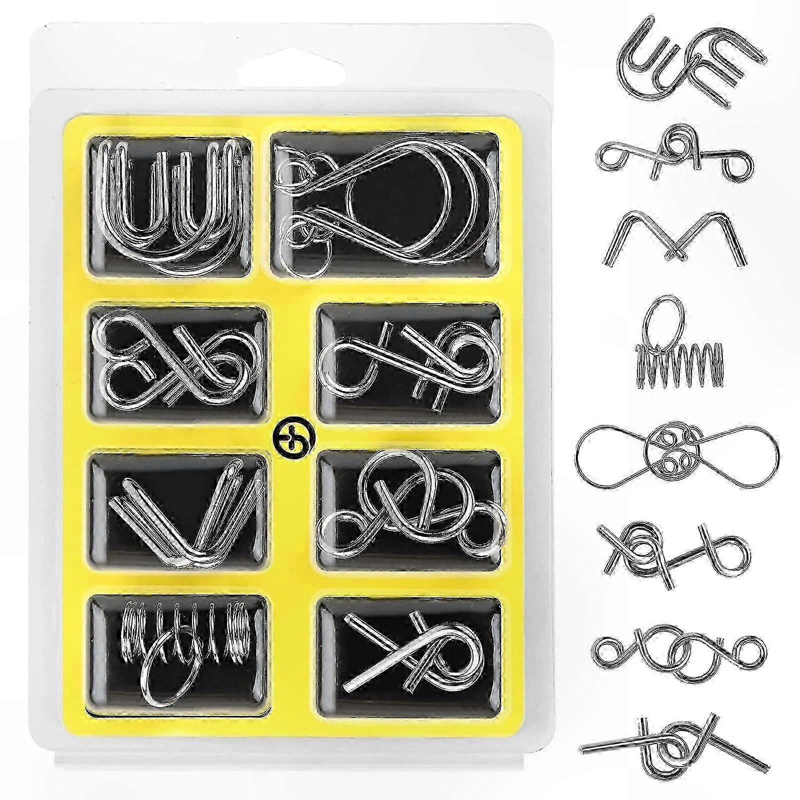 Set of 8 Brain Teaser Metal Wire Puzzles, Classic Mini Metal Puzzle Collection, IQ Challenge Mind Game Knots Lock Puzzle Gift for Various Br