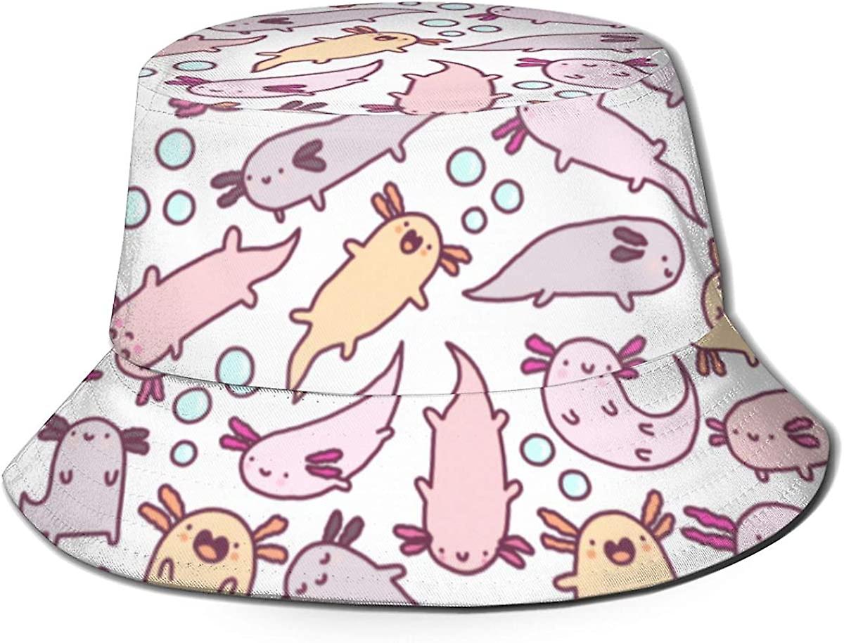 Cute Axolotl Bucket Hat Summer Beach Sun Hat Packable Fisherman Cap For Men Women Teens Hiking Outdoor Sports