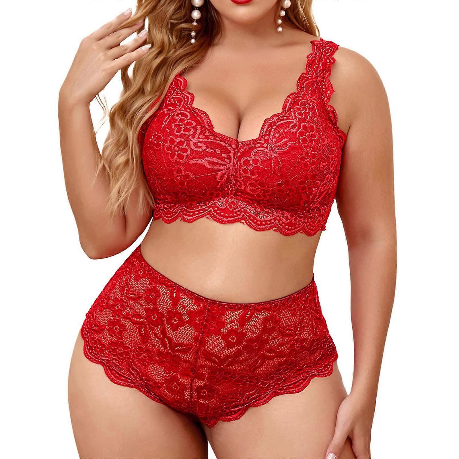 Sexy Lace Underwired Bra and Panty Set Lifting Open String Thong Red
