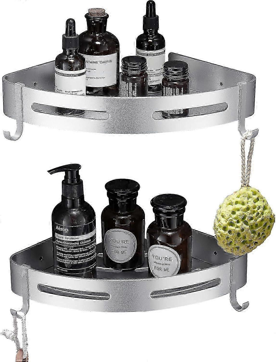 Shower Shelf No Drill Bathroom Storage Silver Triangle Rack Rustproof