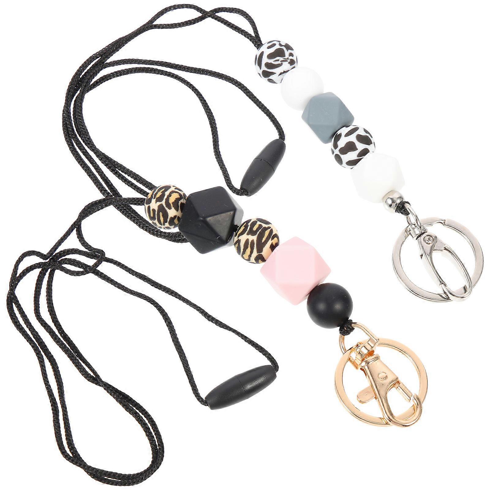Silicone Bead Lanyard Keychain for Antilost Phone and Keys with Nylon and Metal Assorted Color