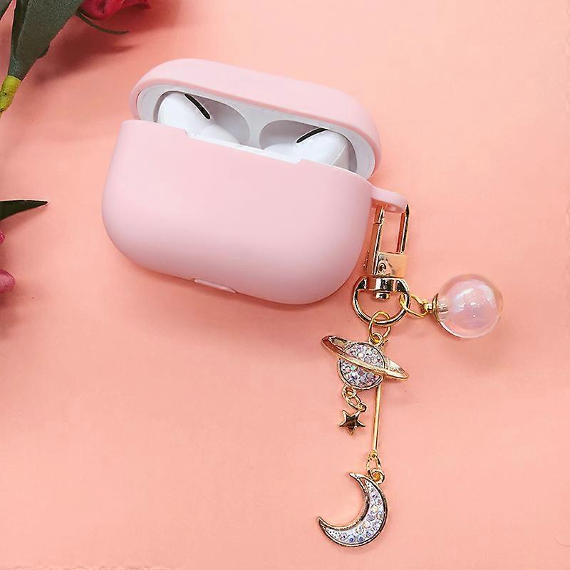 Silicone Case for Apple AirPods 1 2 Pro 3 Bluetooth Earphone Case for Air Pods Cover with Cute Cosmic Moon Cherry Rabbit Keychain~002356