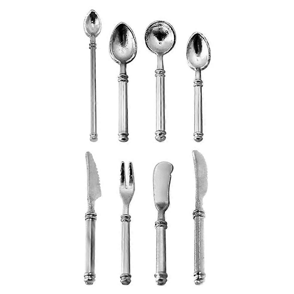 Silver Doll House Tableware Mini Kitchen Cutter Fork and Spoon Models 1Set