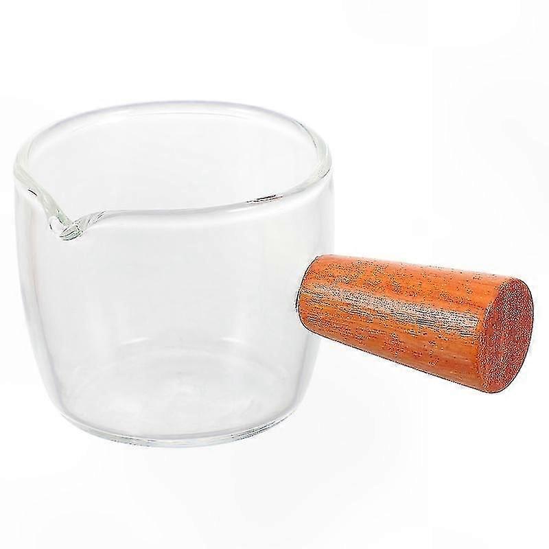 Features - Color: Transparent - Material: Glass, Wood - Size: 9.00 x 5.50 x 4.30 cm / 3.54 x 2.16 x 1.69 inches, 50 ml 11.00 x 7.00 x 5.00 cm / 4.32 x 2.75 x 1.97 inches, 80 ml - This cream jug is a must-have for enjoying tea time alone or casually catching up with close friends. - Drip-free spout helps reduce mess, comfortable-grip handle keeps fingers away from hot contents.